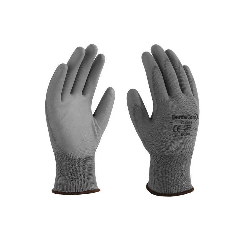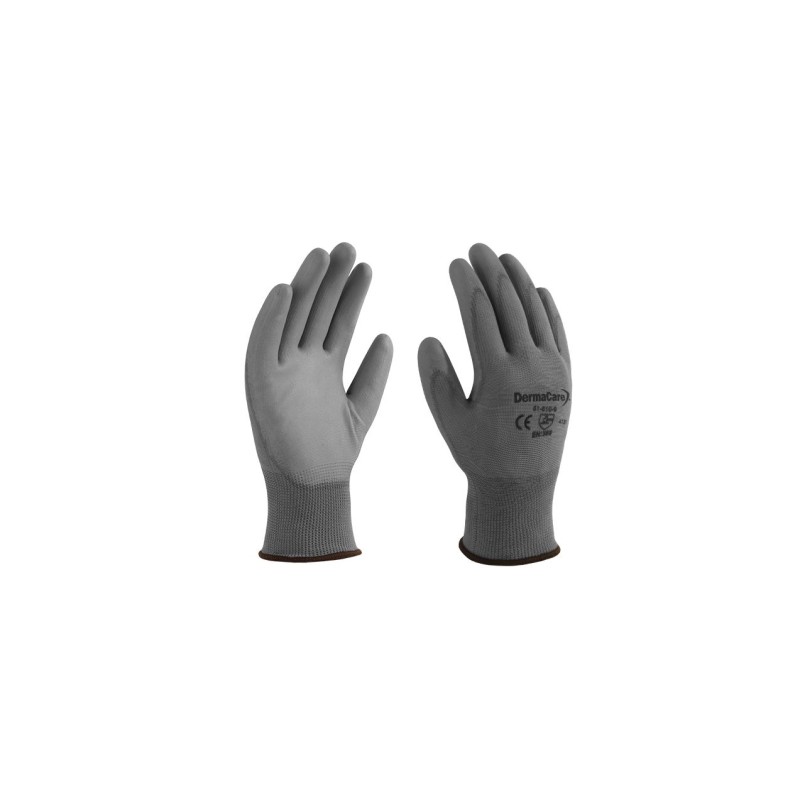 Guante fabricado de nylon y poliuretano en palma color gris, ausencia de costuras, con puño tejido de punto ribeteado. Para uso en general, protección contra riesgos mecánicos donde se utilice cualquier tipo de herramienta, este guante es flexible y cómodo , ideal para trabajos de presición. Buen agarre tanto en seco como en superficies húmedas con presencia de aceites. Muy buena opción para procesos de almacenaje, construcción e industria mecánica.