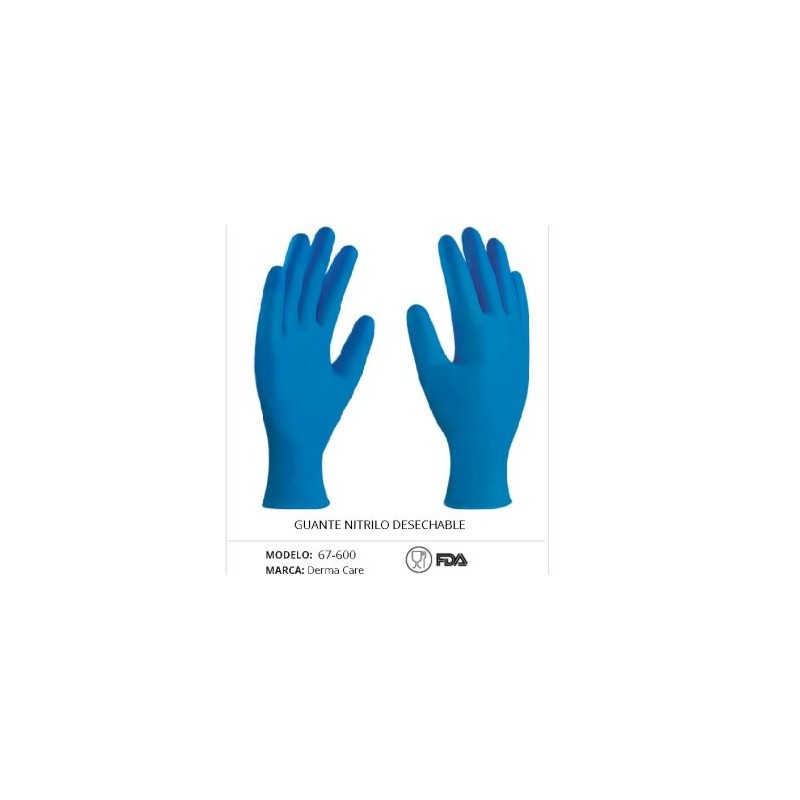 Guante de nitrilo azul, 4 milesímas de espesor 9.5" de largo con puño rolado, dos presentaciones bajo y libre de polvo. Guante desechable resistente a un rango muy amplio de sustancias químicas, más resistente que los guantes de látex, vinil o polietileno. Su diseño proporciona a estos guantes comodidad y resistencia no igualado a los otros guantes convencionales desechables. Fabricado bajo en polvo, además de ser tres veces mas resistentes a la perforación que los guantes de látex o vinil. Ligero, seguro y muy durable. Ideal para personas que sufren reacción alérgica al látex natural. Material aceptado por la FDA para la manipulación de alimentos.